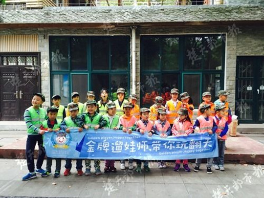 先说到哪里遛。经过数天的踩点,再综合今日的天气预报,郑炜确定了汉口解放公园为遛娃地点。“天气预报说今日天气晴,适于户外遛娃,而且那里有山、有水、有草地,方便我们开展游戏。”接下来,郑炜要解决的就是遛什么的问题。经过一番策划,他们参考电视综艺节目《跑男》,设计出遛娃游戏——小小侦察兵。出发前,他们将小孩们打扮成侦察兵,将30名孩子分成4个侦察小队,给他们每人一张任务卡、一个指南针和一面队旗,让他们在公园里寻找事先安放好的一些线索纸条,找到指定任务,并予以完成。在这个过程中,郑炜和另外3名遛娃师担任4个侦察小队的队长,协助孩子们完成任务。