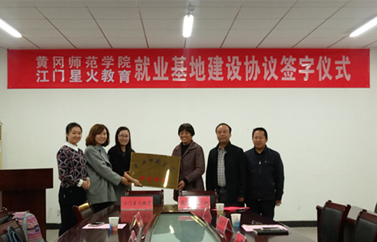 招生与就业处代表学校与江门星火教育科技有限公司签订了校企合作暨就业基地建设协议。
