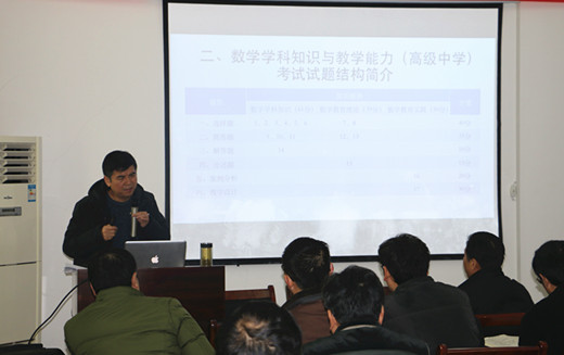 胡典顺作了题为《国家教师资格考试:考情、调查与建议》的专题报告。胡典顺介绍了国家教师资格考试的研究背景,以高中数学教师资格证考试试题为例,对试题结构、华中师范大学数学与统计学院报考教师资格证的考试情况以及教师资格证考试的调查(包括调查对象、调查工具、性别差异、是否师范生差异及考试成绩差异等)进行了细致的分析。最后,针对如何让学生顺利通过国家教师资格考试提出了五点建议,一是加强数学学科知识的教与学;二是注重对课程标准的理解;三是完善教师教育课程结构;四是调整相关课程开设时间;五是适当加强考试指导。