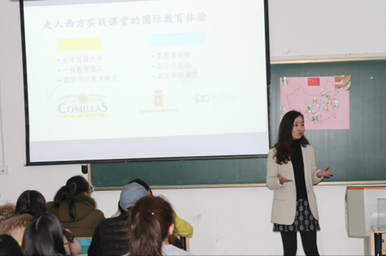 14日晚上,Soledad Amian Sanchez女士为文学院师生作了题为《西班牙青少年儿童汉语教学--趣味教学法与故事教学展示》的精彩讲座。讲座围绕西班牙汉语教学现状,介绍了针对西班牙青少年儿童进行汉语教学的具体方法,并用一堂生动有趣的示范课,让大家亲身感受真实的西班牙儿童汉语课堂。Soledad Amian Sanchez声情并茂、幽默诙谐的教学风格,激起了广大师生对于如何增强儿童的学习动机,有效开展课堂教学等问题的极大兴趣。会后,大家就课堂游戏的开展、师生互派交流等问题进行了深入交流。