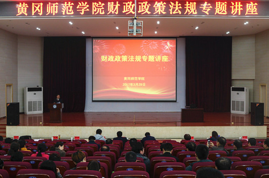 大通社讯(记者 余晨旭 陈艳)3月29日上午,学校在南区学术交流中心举行财政政策法规专题讲座。湖北省财政厅教科文处杜媛媛、湖北省政府采购中心钱进、黄冈市地税局稽查局李建平应邀作专题辅导报告。全体在家校领导出席培训会。党委常委、校长助理汪晓凌主持培训会。