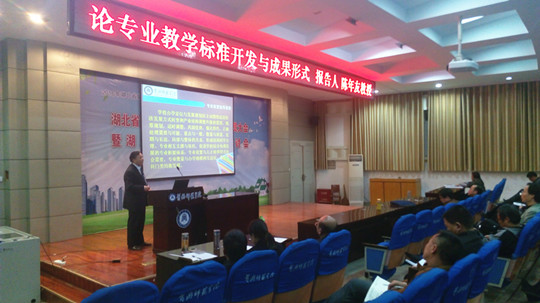 陈年友教授以《论专业教学标准开发与成果形式》为题,分别从专业发展规划思路、专业教学标准开发、教学标准成果形式等三个方面,对学校的专业建设工作进行了系统解读。他首先对专业发展规划的基本内容进行了阐述,指出专业发展规划应符合学校发展方向和目标,应能进一步体现学校办学定位。他分别从标准界定、开发理念、开发原则、开发技术等方面详细描述了专业教学标准的开发思路及开发流程,并介绍了包含专业人才需求调研报告、工作任务与职业能力分析报告、专业教学标准编框架、专业课程标准、专业教学质量评估体系等五大内容的专业教学标准成果形式。陈年友教授还结合自己的丰富管理经验,对学校评估现阶段的重要工作提出了建议。
