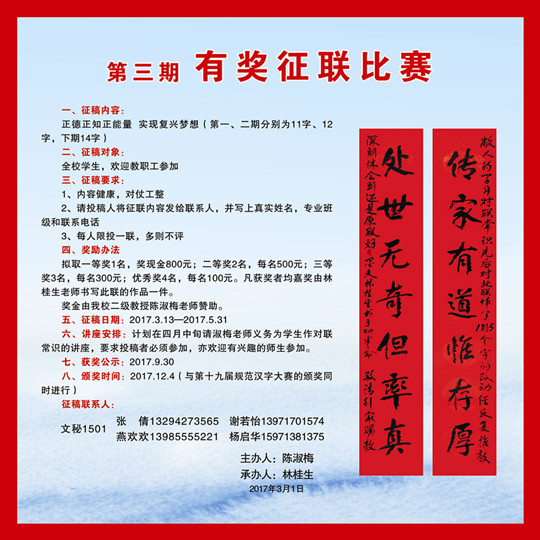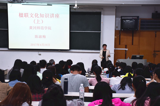 党委宣传部、教务处等单位负责人和全校爱好楹联文化的师生近300人聆听讲座。
