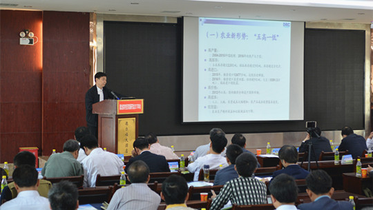 中南财经政法大学博士生导师陈池波主持主题报告会。湖北省社会科学院院长宋亚平,省农业科学院院长焦春海,华中农业大学博士生导师王雅鹏,黄冈市人民政府副秘书长、扶贫办主任方荣分别以《农业的真正病痛到底在哪里》《农业供给侧结构性改革若干问题探析》《关于农业供给侧结构性改革的思考》《坚持“五位一体”探索产业扶贫黄冈模式》为题作了主题报告。