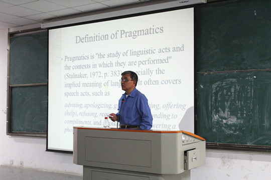 刘迪麟教授作了题为“Culture and pragmatics in language learning and teaching”的专题讲座。他结合大量富于文化语用内涵的英汉语言表达实例,分析中美文化差异,并由此引发对语言学习和教学的深度思考。