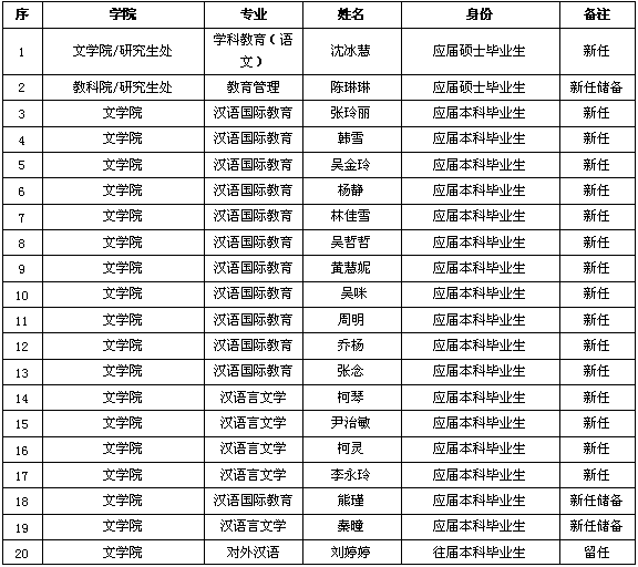 附:黄冈师范学院2017年国家公派汉语教师志愿者及储备人员录取名单