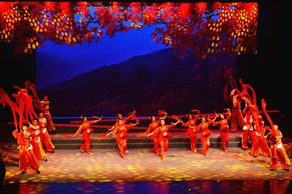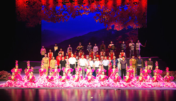 演出尾声,表演者通过原创歌舞表演《红安红》与《梦里常回大别山》,展现了几十年前董必武、陈潭秋等革命先辈点燃黄冈革命火种,到如今黄冈人民薪火相传至今仍生生不息的红色精神。