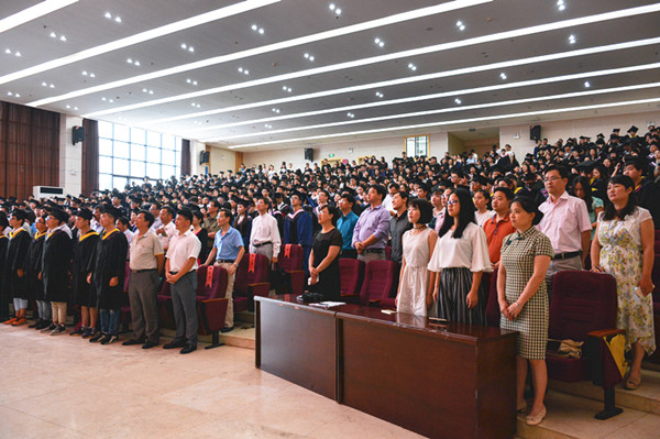 校学位评定委员会全体委员,各中层单位党政主要负责人,2017届教育硕士毕业研究生导师,分管学生工作副书记、辅导员和2017届毕业班班主任,2017届本科毕业生代表和全体教育硕士研究生参加仪式。