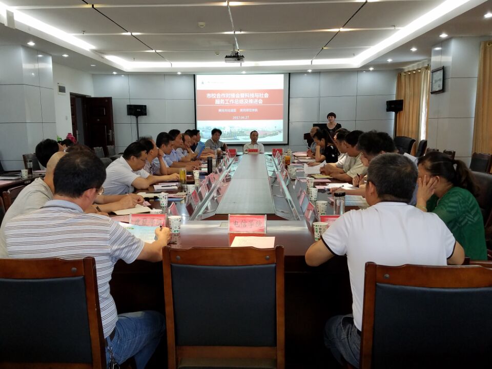 本网讯(通讯员 钟云霞)6月27日下午,学校召开市校合作暨科技与社会服务工作总结推进会。黄冈市政协副主席詹汉彬出席会议,副校长马志斌主持会议。