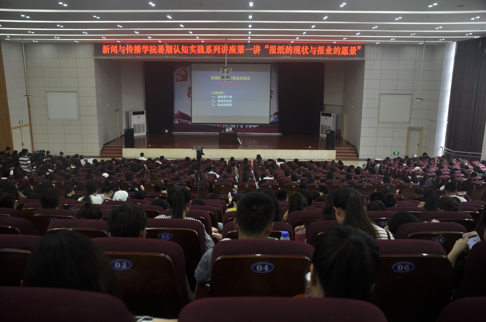 本网讯(通讯员 张雪莹)7月6日,新闻与传播学院举行暑期专业认知综合课程实践月系列讲座。黄冈日报社社长蔡志勇、黄冈广播电视台副台长朱鸿儒、黄冈新闻网主编范学鳌、黄冈市文化局副县级调研员李青松应邀为该院2015、2016级学子开展专题讲座,分析平面媒体、电视媒体、新媒体、广播媒体面临的问题与挑战,受到学生的广泛欢迎。