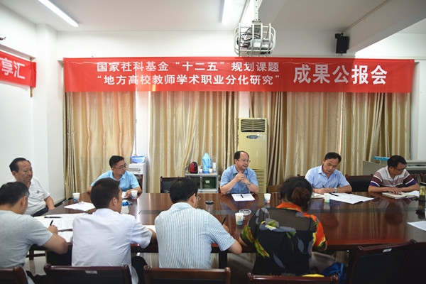 本网讯(通讯员 钟云霞)近期,由我校李金奇教授主持的国家社科基金课题《地方高校教师学术职业分化研究》(项目编号:BIA130067)研究工作任务完成,进入结题鉴定阶段。7月13日,课题组在教育科学与技术学院会议室举行了研究成果公开报告会。