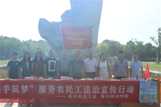 本网讯(通讯员 王丽)为切实保障农民工合法权益,9月8日,我校联合黄冈市总工会在遗爱湖公园开展服务农民工法治宣传活动。