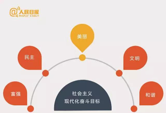 分两步走在本世纪中叶建成富强民主文明和谐美丽的社会主义现代化强国。