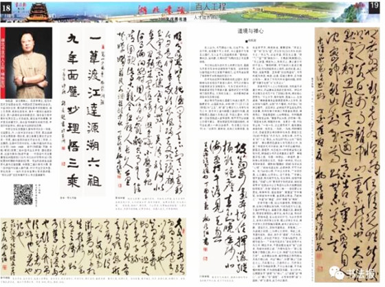 本网讯 日前,我校杨疾超教授成功入选湖北书法百人工程——100名优秀书法人才培养计划。《书法报》第40期18、19版专版刊登了杨疾超的书法作品以及其撰写的论文《道境与禅心》。