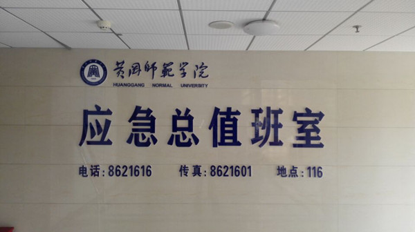 本网讯 近日,在学校厚德楼一楼,一个标识显得格外引人注目。这就是“黄冈师范学院应急总值班室”。