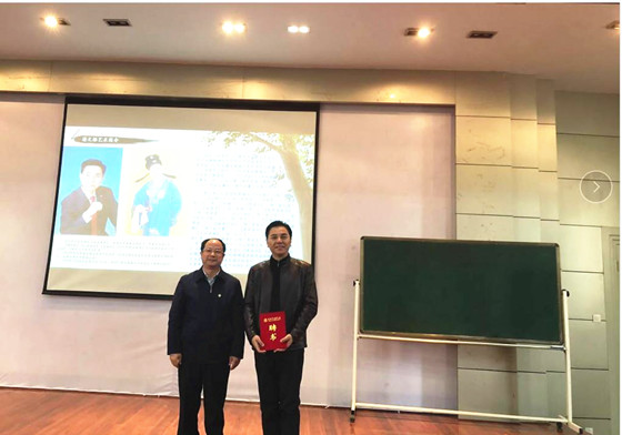 本网讯(通讯员 赵桂莲)为进一步做好戏曲进校园工作,提升黄梅戏艺术研究水平和教学水平,11月4日,我校音乐学院邀请安徽黄梅戏艺术职业学院表演系主任、国家一级演员潘文格来校讲学。校党委副书记、纪委书记李金奇出席活动,并为潘文格颁发客座教授聘书。