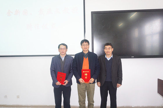 本网讯(通讯员 姜国松)11月16日,华中师范大学博士生导师、楚天学者余新国教授,武汉理工大学戴亚文教授应邀来校,为计算机学院师生作主题报告。副校长马志斌出席报告会,并为两位学者颁发客座教授聘书。
