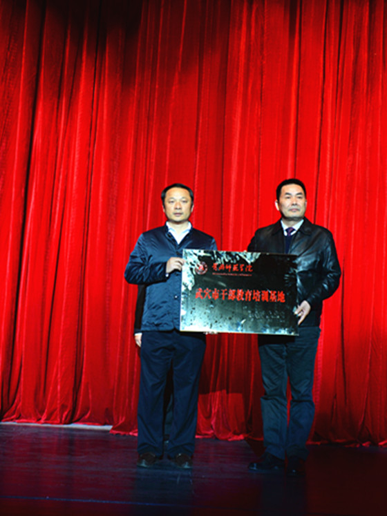 武穴市长李新桥授予我校“武穴市干部教育培训基地”牌匾