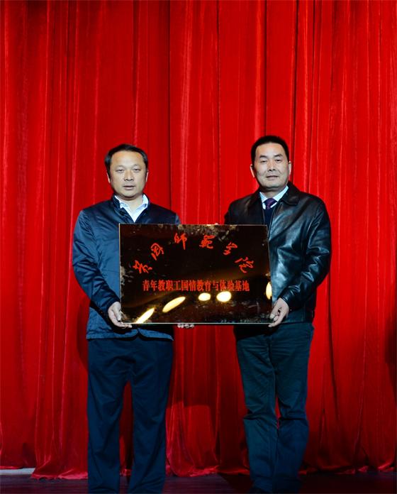 校长陈兴荣向武穴市授予“黄冈师范学院青年教职工国情教育与体验基地”牌匾