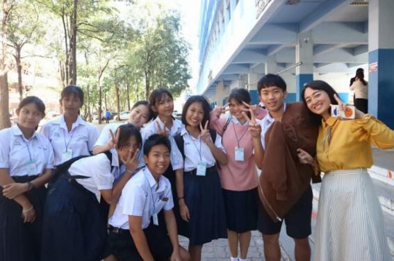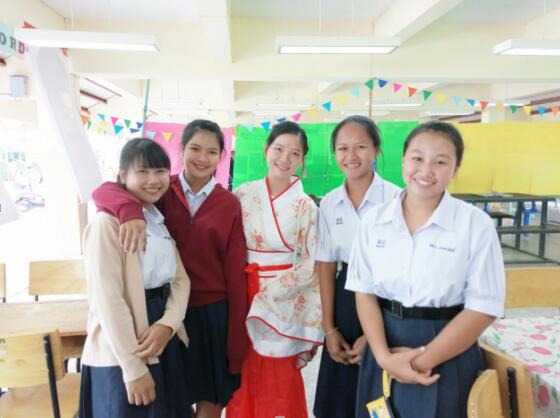 2017年6月,外国语学院英语专业201302班王春(左三)受国家汉办选派,赴泰国Phchai School进行汉语教学。图为参加文化联谊会合影。