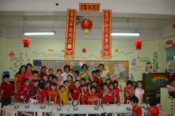 2014年1月,外国语学院英语专业200905班朱颖同学(后排右一)受国家汉办选派,赴菲律宾侨中学院进行汉语教学。图为带领班级学生庆祝中国新年活动现场。
