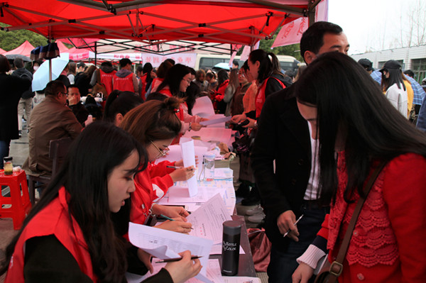春雨绵绵,但挡不住毕业生们的就业热情,他们纷纷举着伞与招聘负责人进行洽谈。本次招聘会有来自北京、上海、江苏、浙江、广东、湖南、江西、安徽、山东、湖北等多个省市的240余家企事业用人单位,其中,不仅有以潜江市教育局、仙桃市教育局、儋州黄冈中学等优质师范生就业单位,还有50余家注册资金超过千万的公司,如青岛海信、中国葛洲坝集团、百度在线、湖北长安、索菲亚家居等,共提供岗位9000余个,涉及中小学教师、软件开发工程师、法务专员、医药研发工程师、会计、销售顾问、行政助理、查勘定损、家装设计师等多种类型。