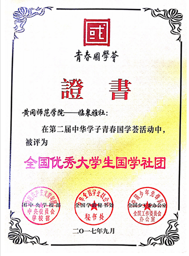 临皋雅社2017年度被评为全国高校国学百佳社团