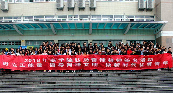 3月16日,商学院在东坡文化广场举办了“弘扬雷锋精神”主题签名活动,倡导广大学子在学习上发扬雷锋同志的“钉子”精神,奋进求实、努力学习,在生活上发扬雷锋同志热爱集体、乐于助人、团结友爱的精神。