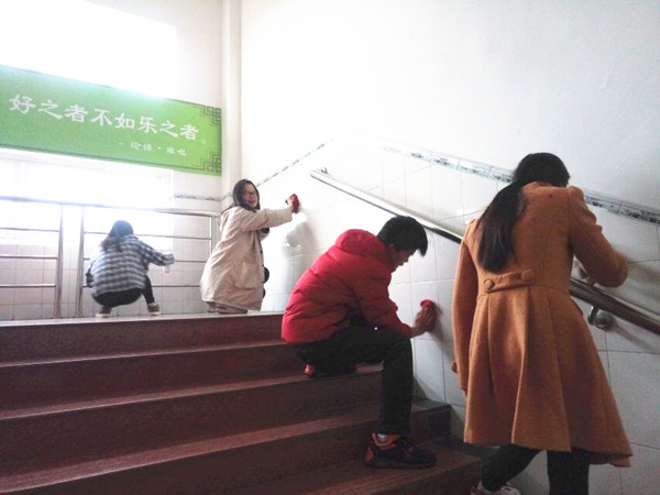 3月17日、24日,电子信息学院分别在电信楼和兰园学生宿舍公寓周围开展了打扫教室和楼道卫生、清理栏杆、路灯、道路垃圾活动。
