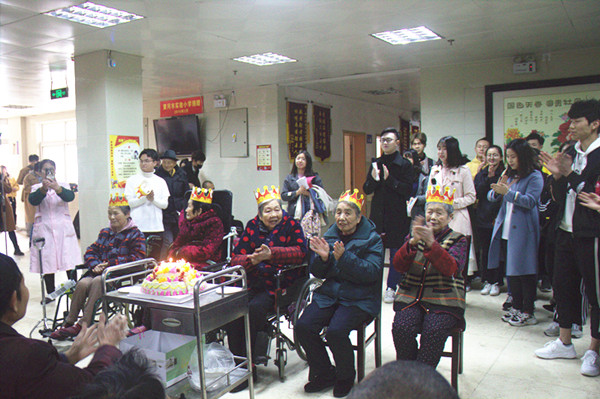 3月17日,音乐学院5名青年教师同“麦穗”志愿者团队、“BOOM”桌游社的97名志愿者们来到黄冈市老年公寓,为老人们送去精心准备的文艺节目,为他们过生日、分发生日蛋糕,为老人们送去微笑和温暖祝福。