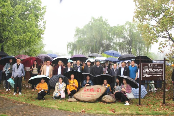 本网讯(通讯员 王艳艳)又是一个毕业季……文学院2018届毕业生在离校之际,自发捐款购买26棵红梅树,为母校捐建红梅园,红梅园位于南校区生态园。4月12日上午,天降大雨,但挡不住红梅园揭幕仪式的举行。校党委书记王立兵,党委副书记、纪委书记李金奇出席揭幕仪式,并一起冒雨为“红梅园”景观石、“梅园小记”揭幕。